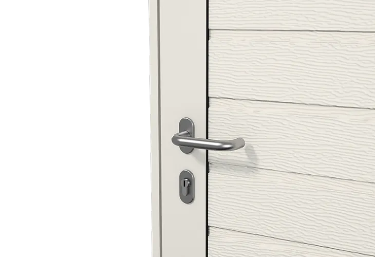 Создайте гармоничный тандем в экстерьере гаража. Для этого достаточно заказать боковую дверь в едином стиле с секционными воротами.